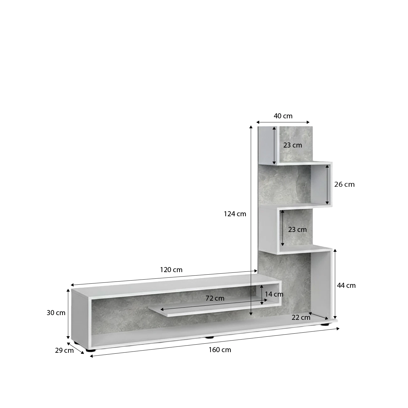- Concebido para oferecer ordem e amplitude visual, este móvel possui uma prática zona baixa para televisão e um original módulo lateral com prateleiras abertas, ideal para colocar livros, elementos decorativos, plantas ou iluminação ambiente.