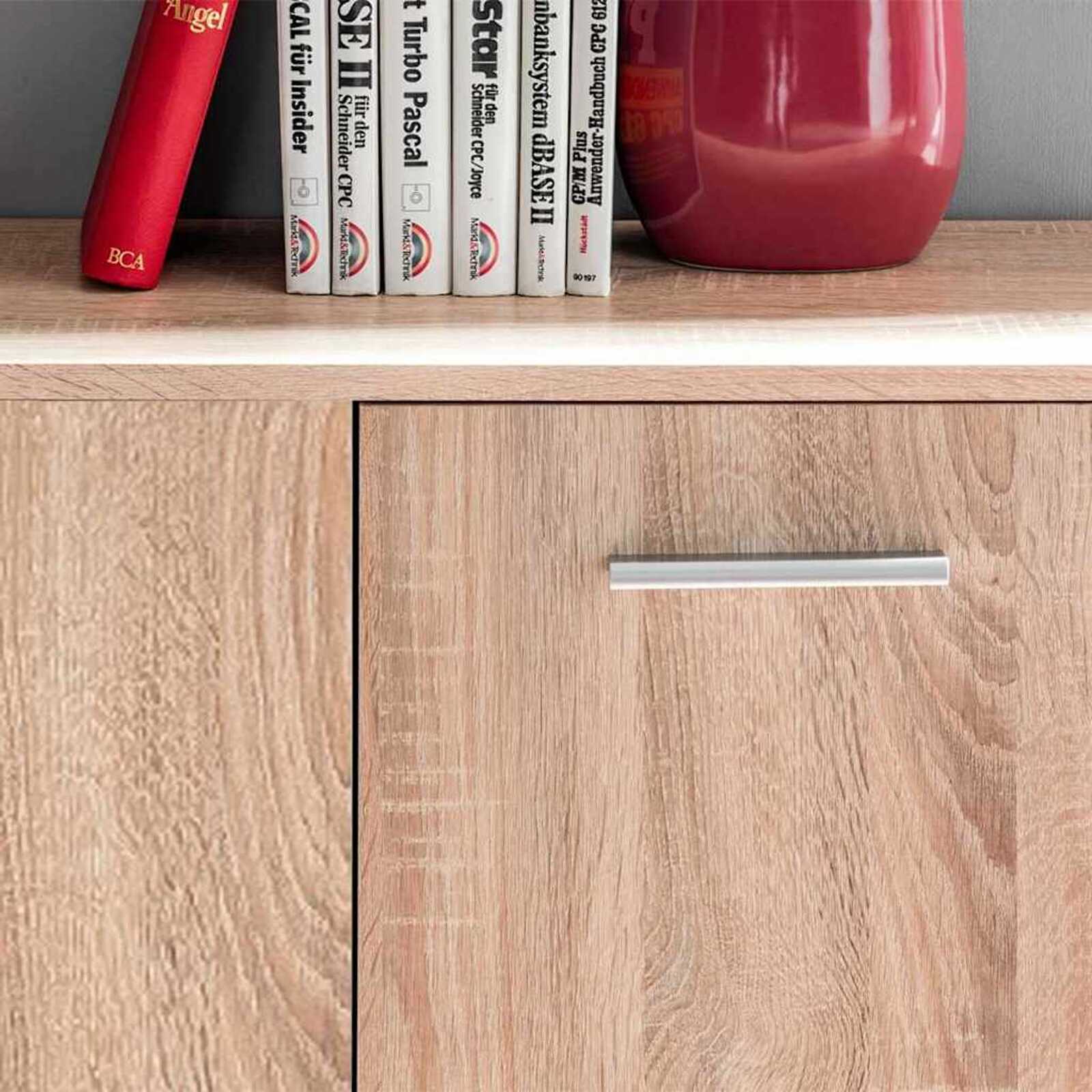 - Esse armário tem um design espaçoso com oito compartimentos, ideal pra manter sua coleção de mídias organizada e sem bagunça.