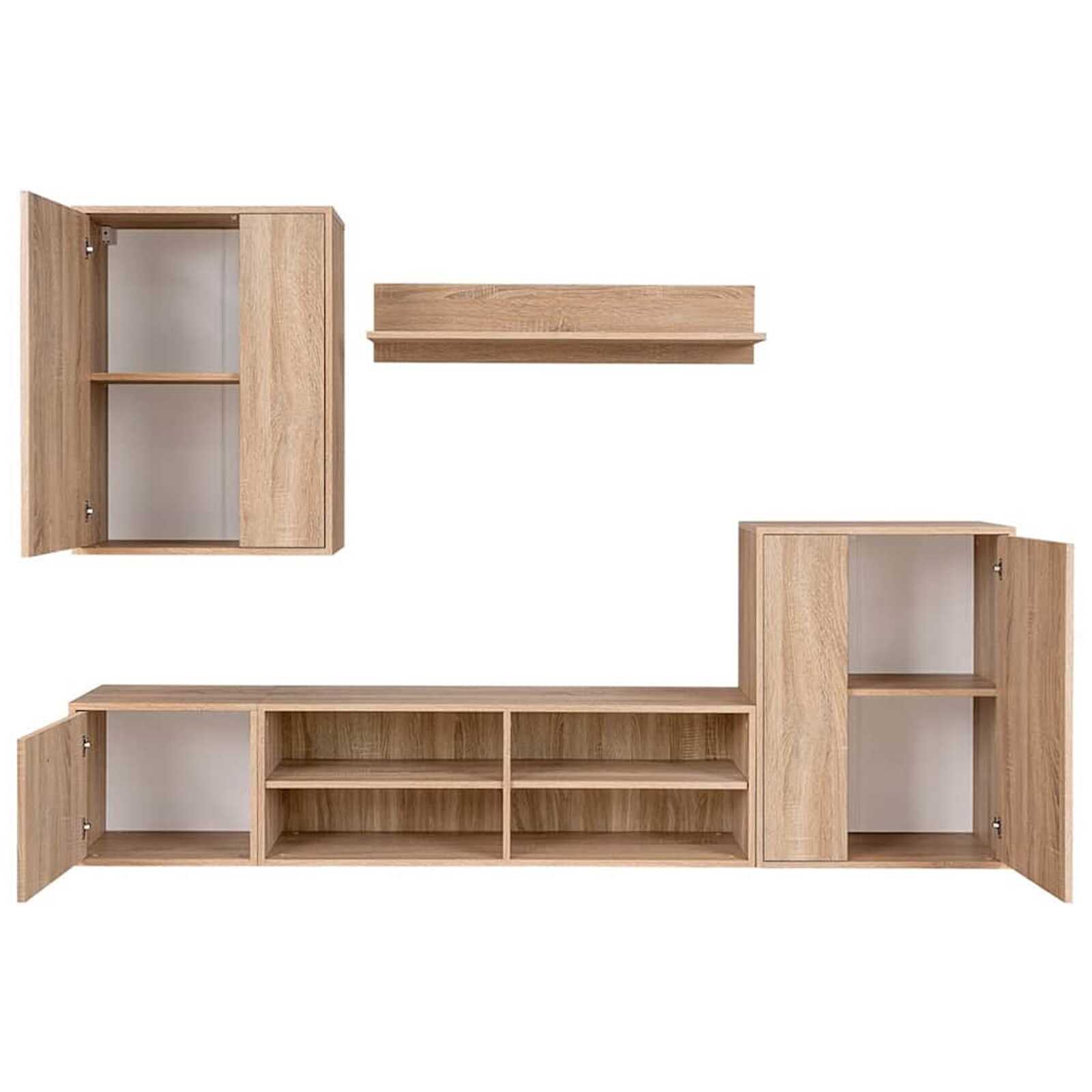 - 1 x Armário de Apoio, 1 x Rack, 1 x Armário para TV (117x30x39 cm), 1 x Armário para TV (44x30x39 cm), 1 x Armário de Parede
