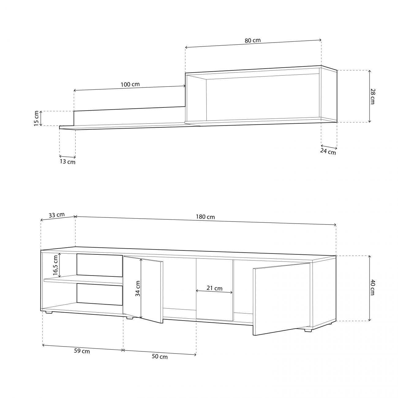 - Medidas do módulo superior: 80 cm (comprimento) x 24 cm (profundidade) x 28 cm (altura)