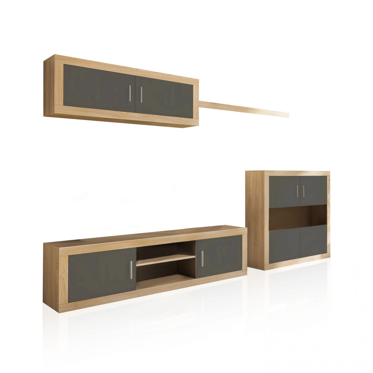 - Esta é uma das composições de mobiliário mais limpas que oferecemos como conjunto. Como espaço livre para decoração, tem apenas a prateleira, tudo o resto será organizado nos módulos com portas contrastantes. Além disso, a faixa de vidro da garrafeira permitir-lhe-á ter um espaço de decoração protegido. Perfeito para aqueles que gostam de manter tudo no seu lugar e fora da vista.