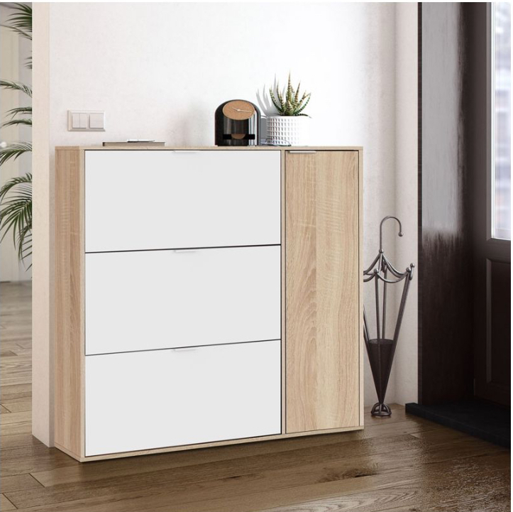 - fabricada em melamina de alta qualidade, um material sintético 100% não poroso que impede a proliferação de bactérias e é muito fácil de limpar com um simples pano húmido. Assim, oferece um ambiente higiénico e seguro, ideal para guardar sapatos.