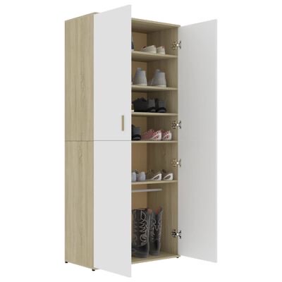 Feito de um contraplacado forte, este móvel de corredor é extremamente durável e resistente. A sapateira possui 6 prateleiras, oferecendo um amplo espaço para manter os seus sapatos bem organizados. Graças às 2 portas, o organizador de sapatos protege os seus sapatos do pó e mantém-nos ocultos.