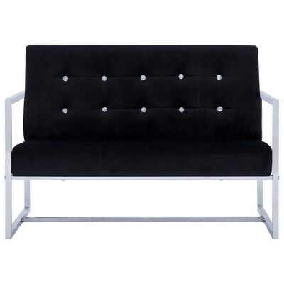 O sofá foi estofado com um veludo resistente e acolchoado com enchimento de espuma macia para um maior conforto. Graças à sua estrutura de madeira maciça, bem como às pernas cromadas de alta qualidade, o sofá é muito estável e durável. O sofá de 2 lugares é fácil de montar.