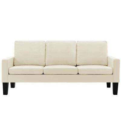 Este sofá foi estofado com couro artificial fácil de limpar e possui almofadões espessamente acolchoados, oferecendo-lhe um espaço confortável onde poderá relaxar. A estrutura de madeira proporciona estabilidade.