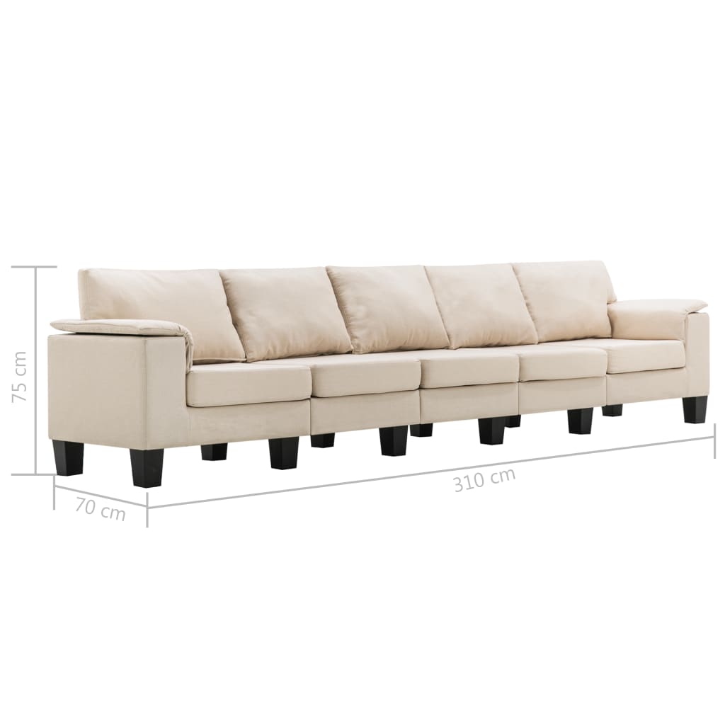 O sofá foi estofado com um tecido resistente e acolchoado com enchimento de espuma macia para um maior conforto. Graças à sua estrutura em MDF maciço, bem como às pernas em plástico de alta qualidade, o sofá é muito estável e durável. O sofá de 5 lugares é fácil de montar.