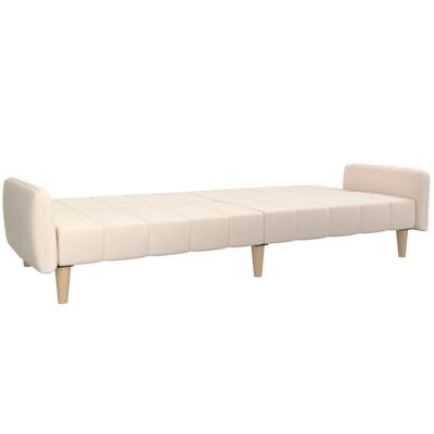A estrutura de madeira contribui para a robustez do sofá-cama, enquanto o acolchoamento espesso em espuma oferece conforto adicional. Este sofá-cama pode ser convertido de sofá em cama e vice-versa de uma forma rápida e fácil. Pode empurrar os dois almofadões separados para trás parcialmente ou para baixo, para criar um local ideal para uma soneca ou uma cama de solteiro.