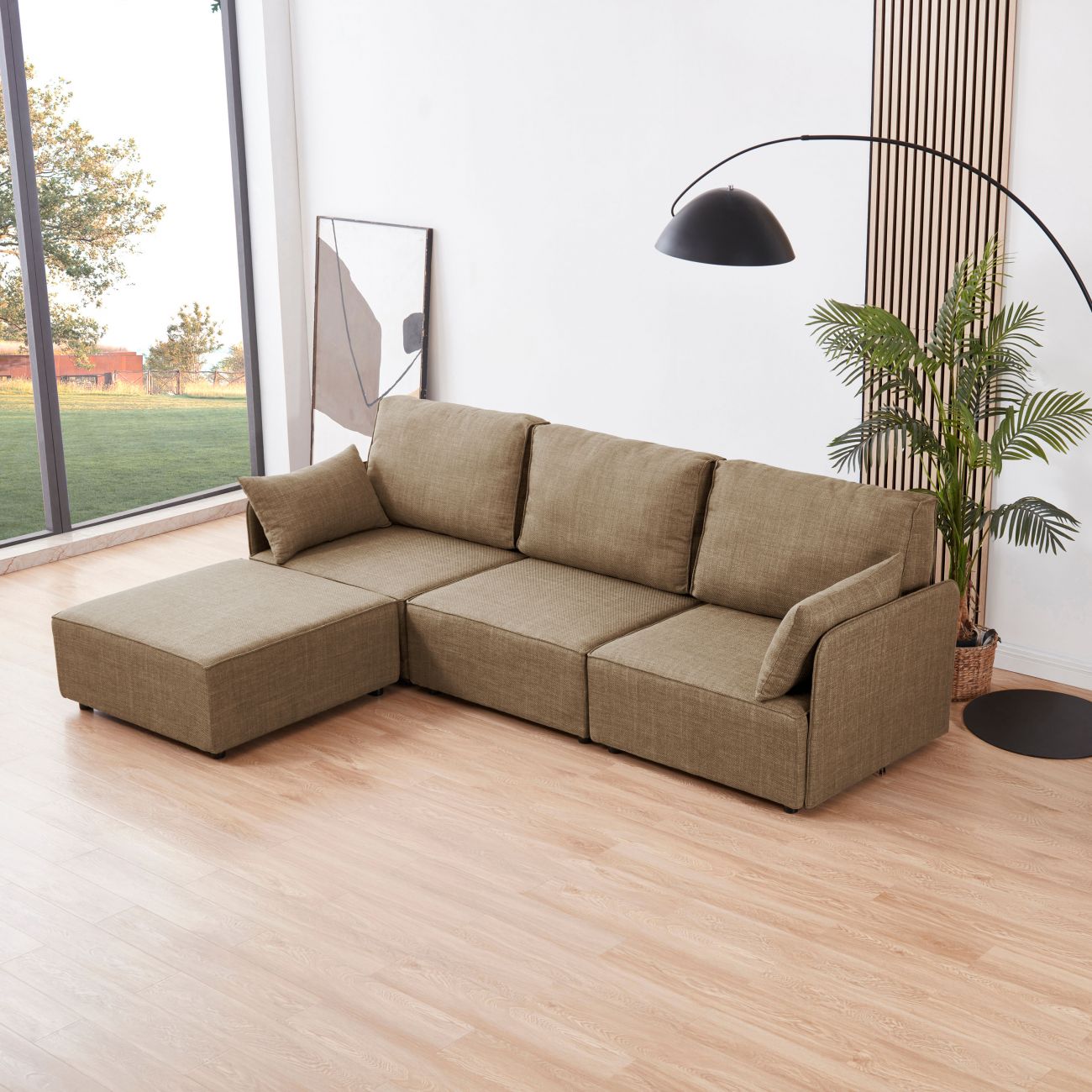 - Todos os módulos deste sofá são modulares, leves e fáceis de manusear, o que facilita a sua reorganização e montagem. Além disso, são fabricados com materiais de alta qualidade, garantindo durabilidade e estabilidade. O seu design moderno e elegante combina com uma grande variedade de estilos decorativos, tornando-o a escolha perfeita para qualquer tipo de casa.
