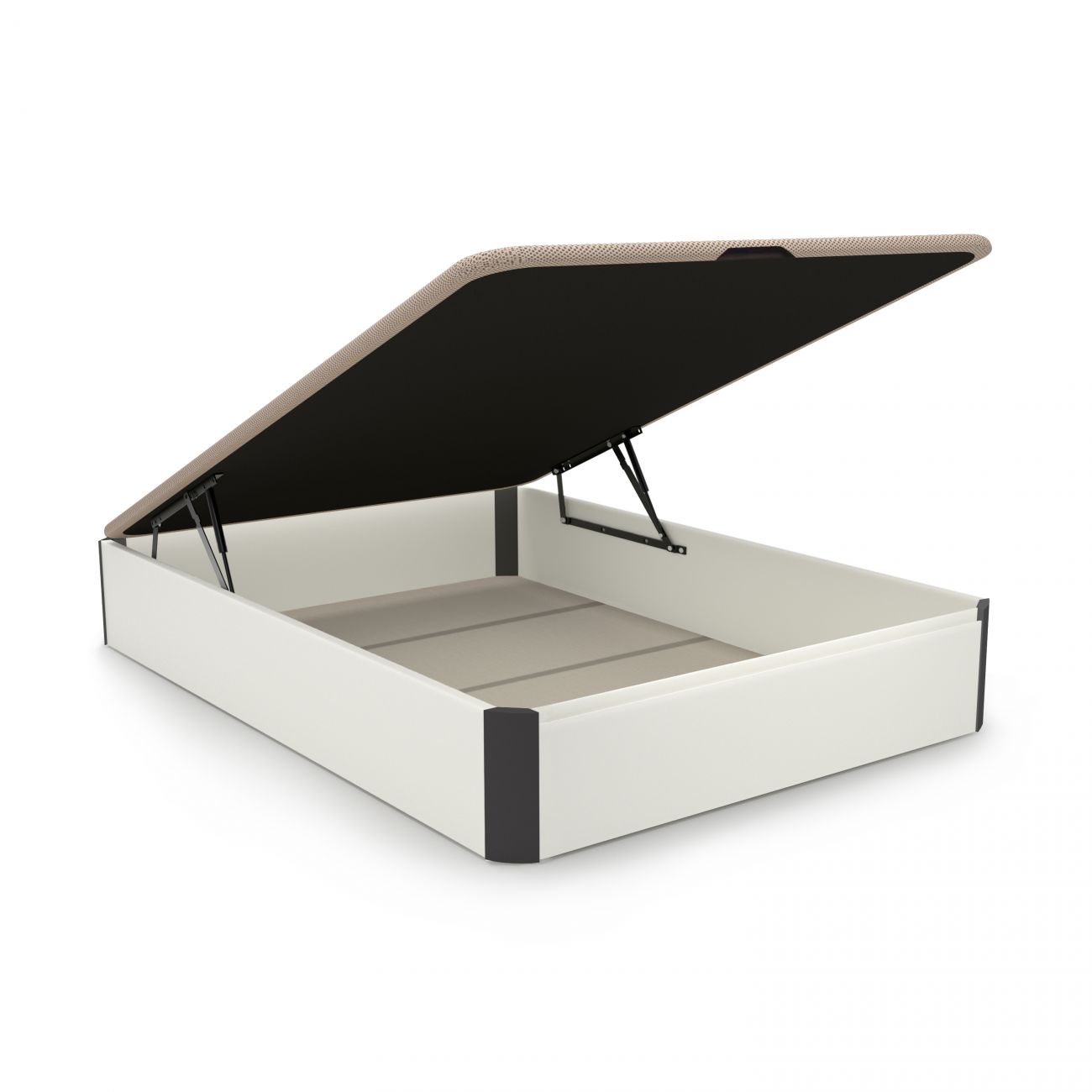 A sommier Fiesta é uma peça de mobiliário de quarto que facilitará a sua vida graças ao seu grande espaço de arrumação interior com sistema de ventilação, aos seus acabamentos de qualidade e à sua altura elevada. Uma peça de mobiliário indispensável se precisar de arrumação extra em sua casa, mas não tem mais espaço para roupeiros ou gavetas.
