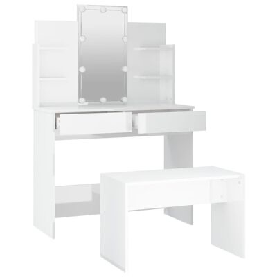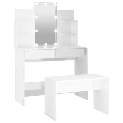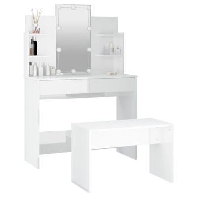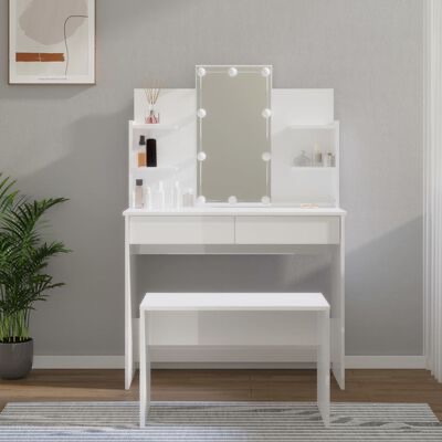 Este conjunto de toucador moderno confere à sua divisão um visual intemporal e refinado. O conjunto de toucador com LEDs é o complemento perfeito para a decoração do seu quarto e mantém os seus cosméticos ao alcance!