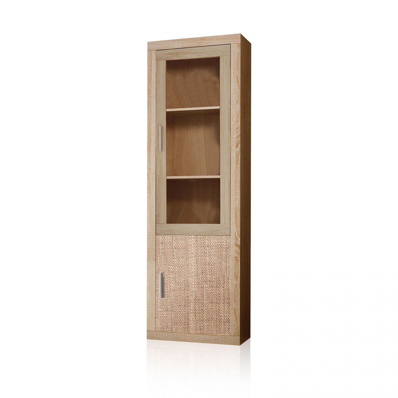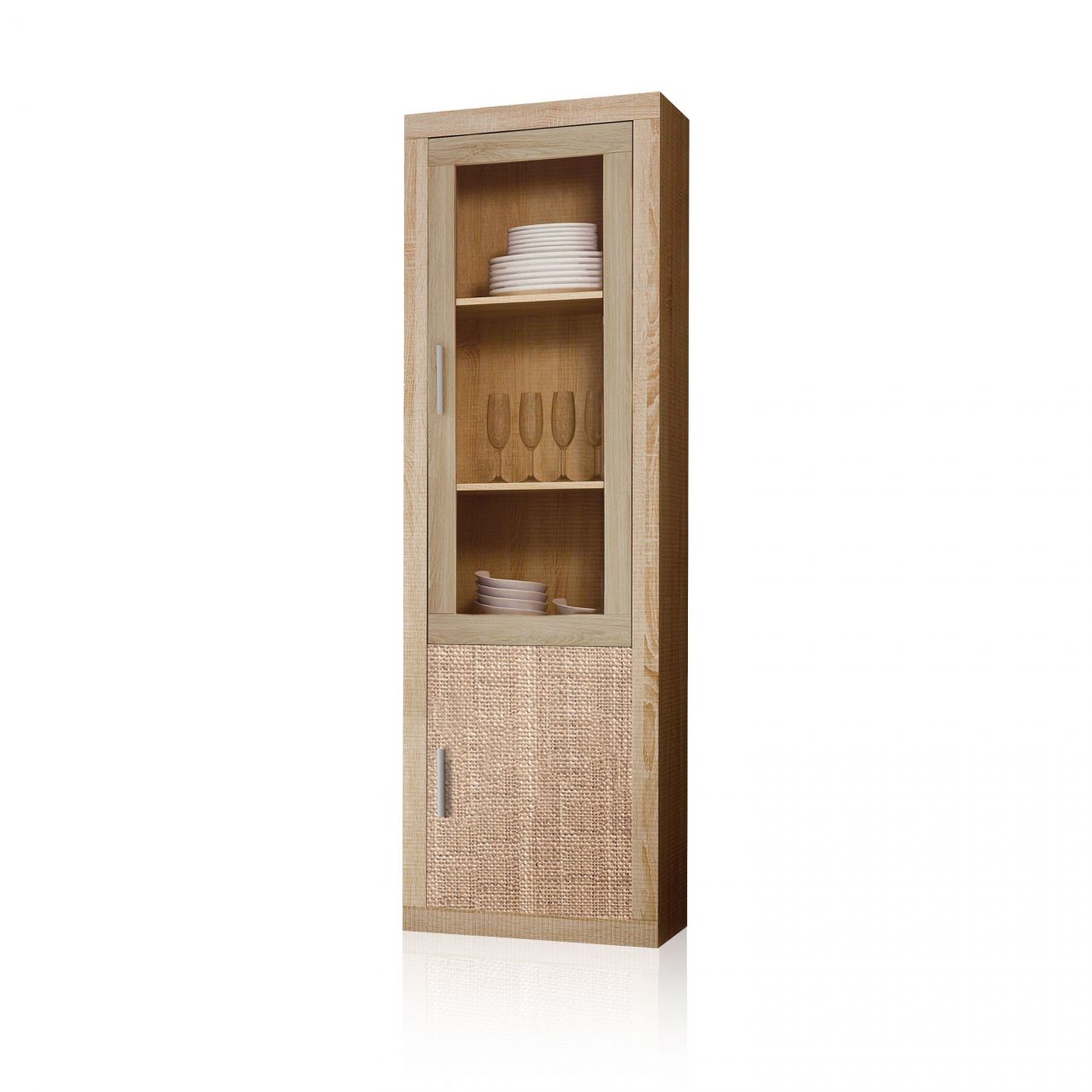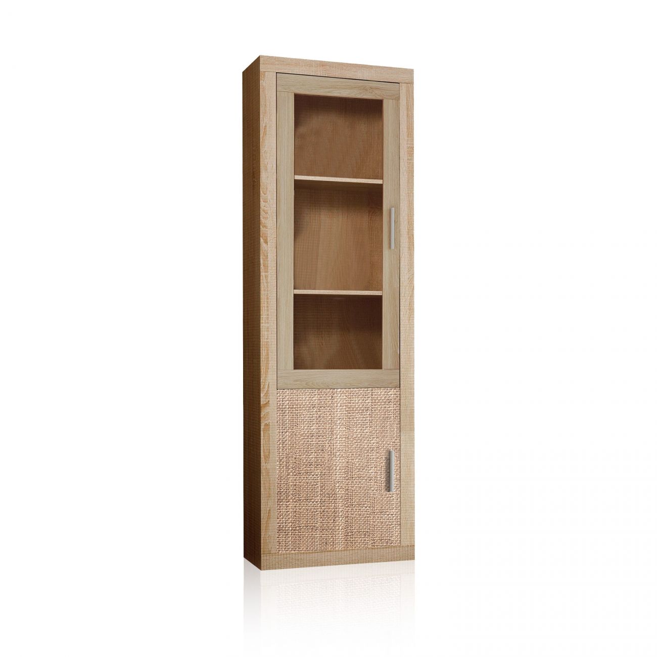 - A vitrina de 2 portas combina o vidro de uma das suas portas com o branco, o cinzento grafite ou o estampado têxtil sem textura que fazem dela um móvel de grande classe.